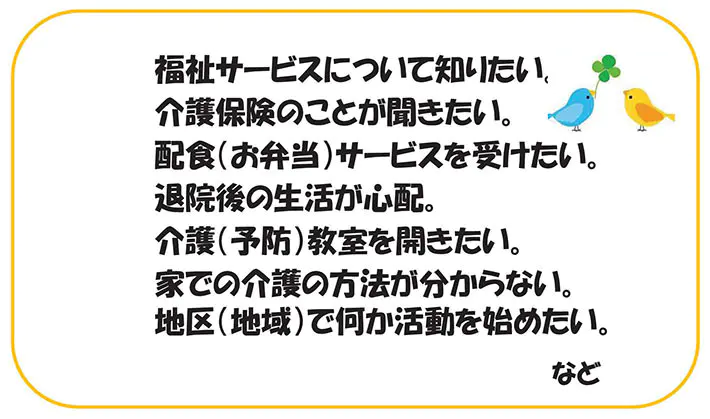 在宅支援室は、高齢者の方が日常生活を過ごす中で困ったことなどを気軽に相談できる窓口になっています。